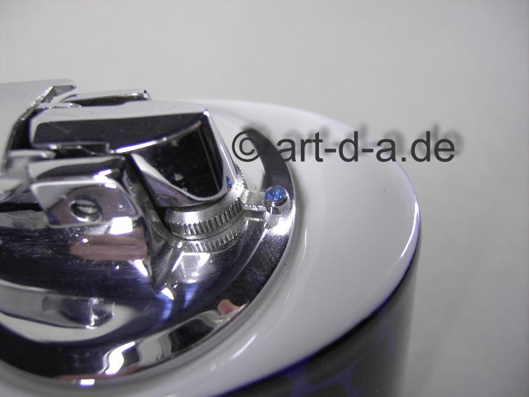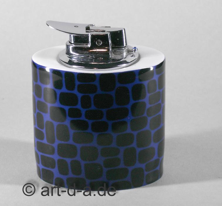 Rosenthal Feuerzeug Modell-Nr.: 2281 Dekorentwurf von Emilio Pucci Ausformung von 1963 Höhe gesamt ca. 10 cm MIT dem blauen Stein am Flammenhöhenversteller