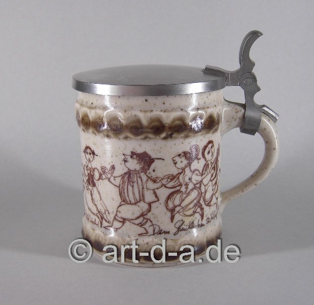 Bier-Krug mit Deckel, "Geflügelte Worte" Höhe ca.11,5 cm, D 9,5 cm