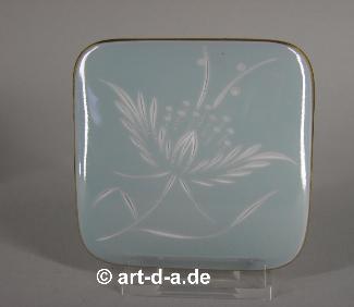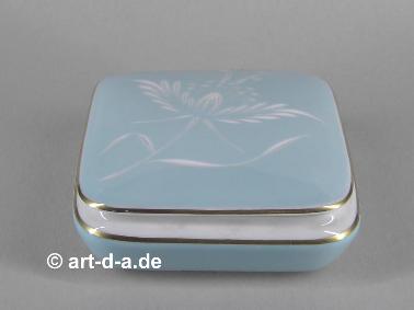 Heinrich Dose mit handgearbeitetem Gemmoschliff auf dem Deckel, einer aufwändigen und kostbaren Dekorationsmethode. Höhe ca. 9,5 x 9 x 4 cm